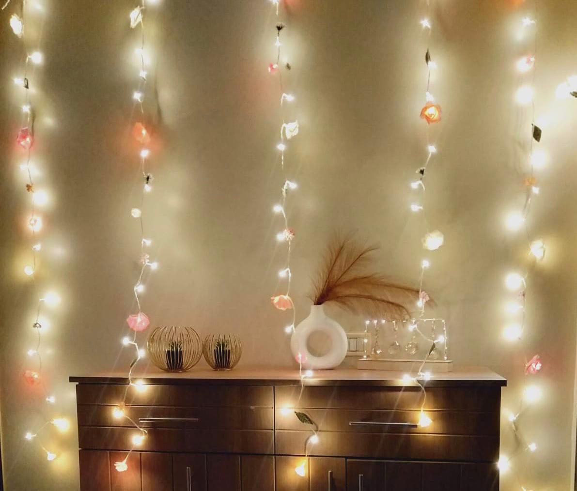 ستاره ورد مبهجه جداا 🌸 اضاءه اصفر وورم⚡️تنفع ديكور لشقتك .. تتعلق علي الستائر …. علي الحائط … غرف الاطفال .. في طرقه البيت بديل للستاره 🌸🌸
