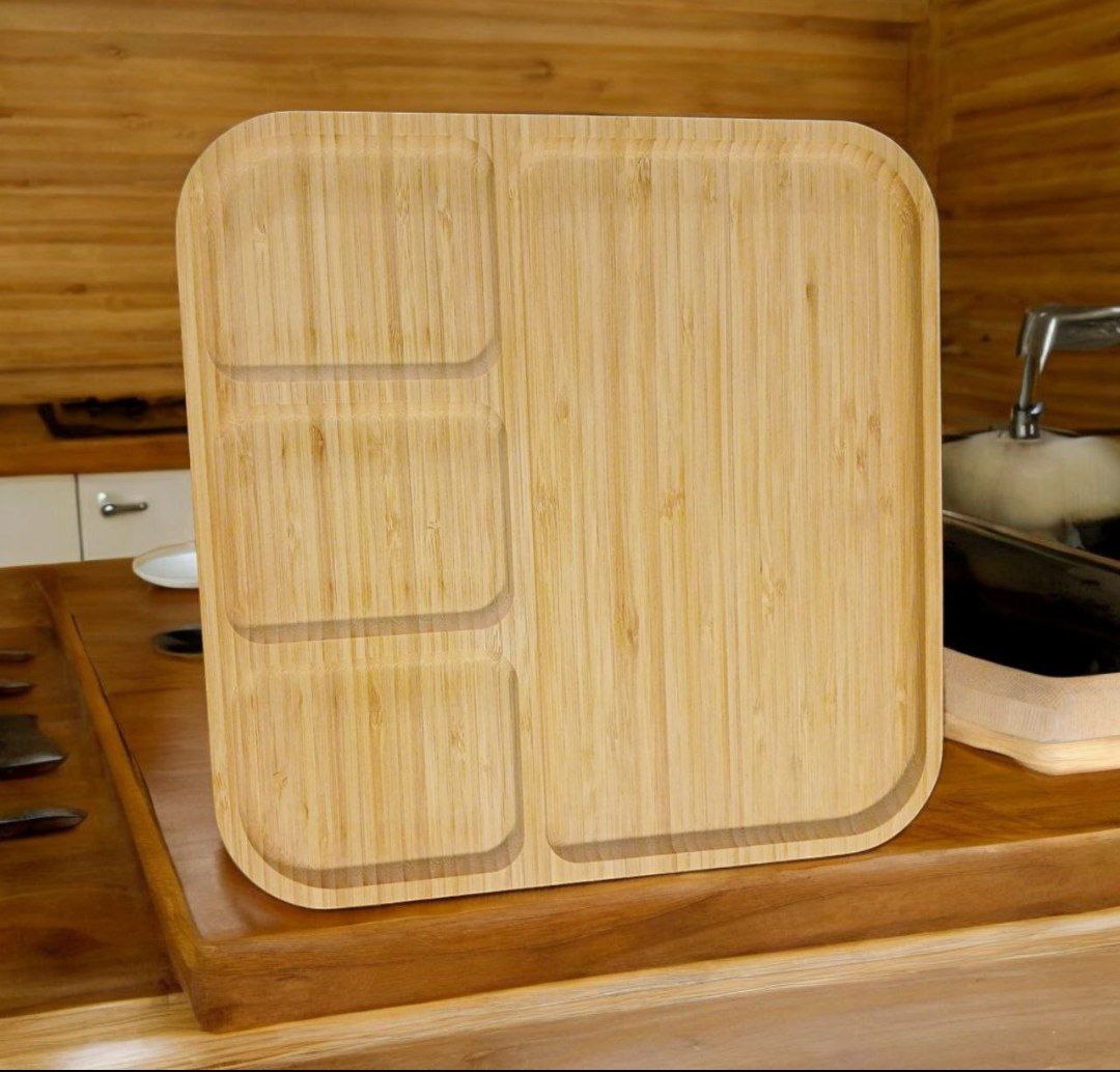طبق خشب بامبو متقسم او صنيه تقديم