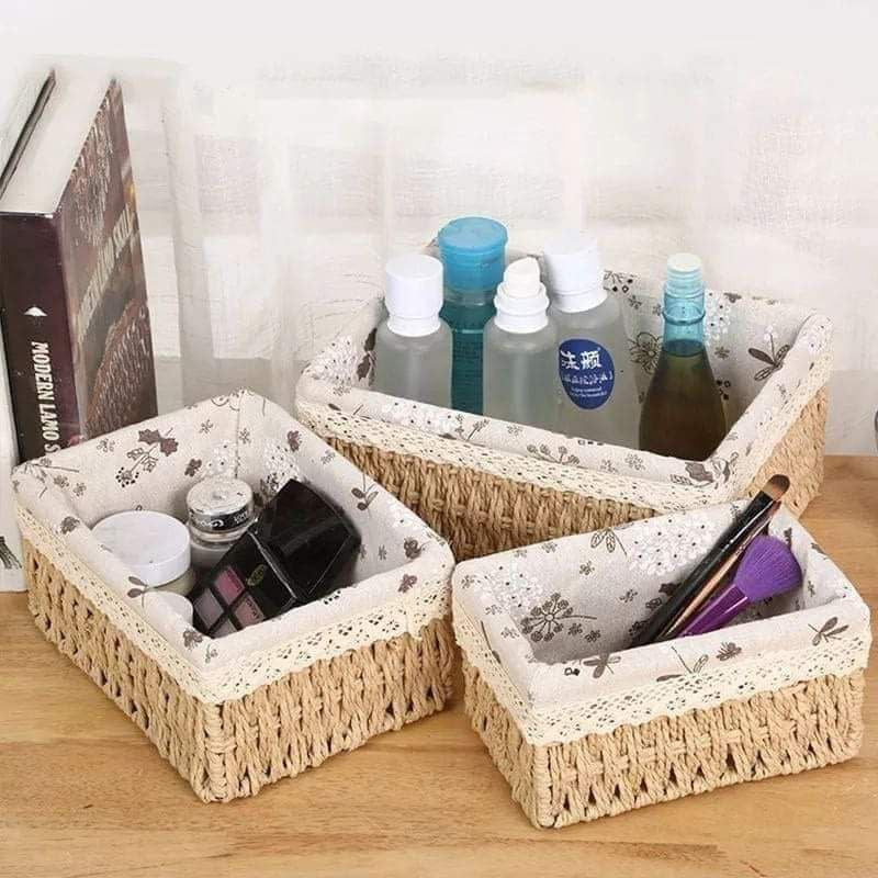 منظم وباسكت رتان بغطاء قماش الكتان المنقوش وكنار جوبير