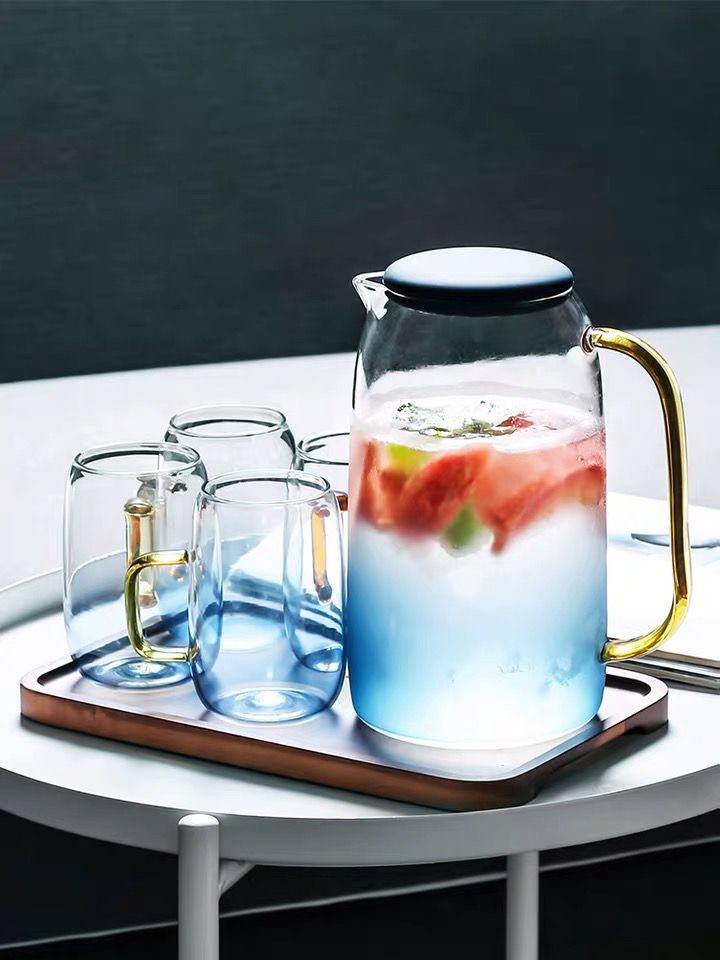 الطقم بيتكون من دورق و٤ مجات من اجود انواع الزجاج المقاوم للحراره والبروده