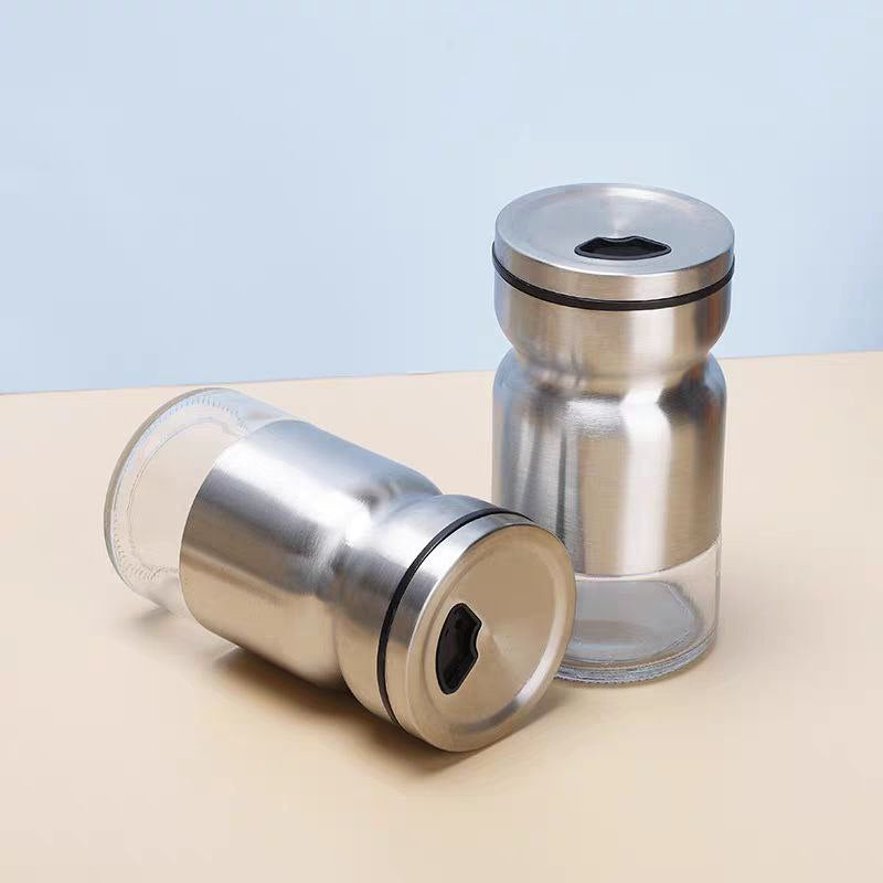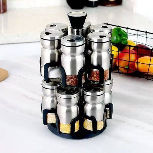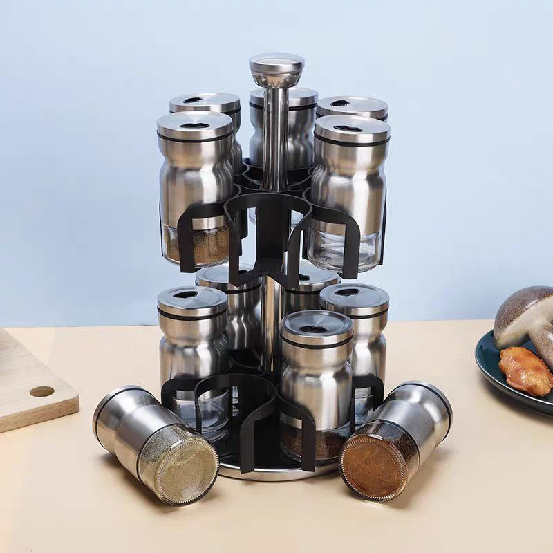 طقم توابل 12 قطعه دورين دوارالبرطمان زجاج من الداخل مغطي بكفر استيل لحمايته من الصدمات