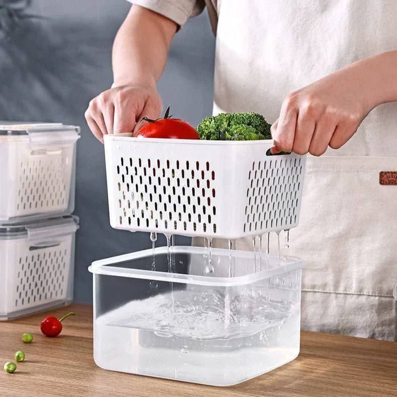 علب للثلاجة لتخزين والحفاظ على الخضروات والفواكه. تأتي حاوية الثلاجة مع سلة قابلة للتصفية. يتم استخدام صينية الترشيح في الجزء السفلي لرفع الطعام من الرطوبة وبالتالي يمكن استخدامها للتخزين بعد التنظيف دون تغيير العلب