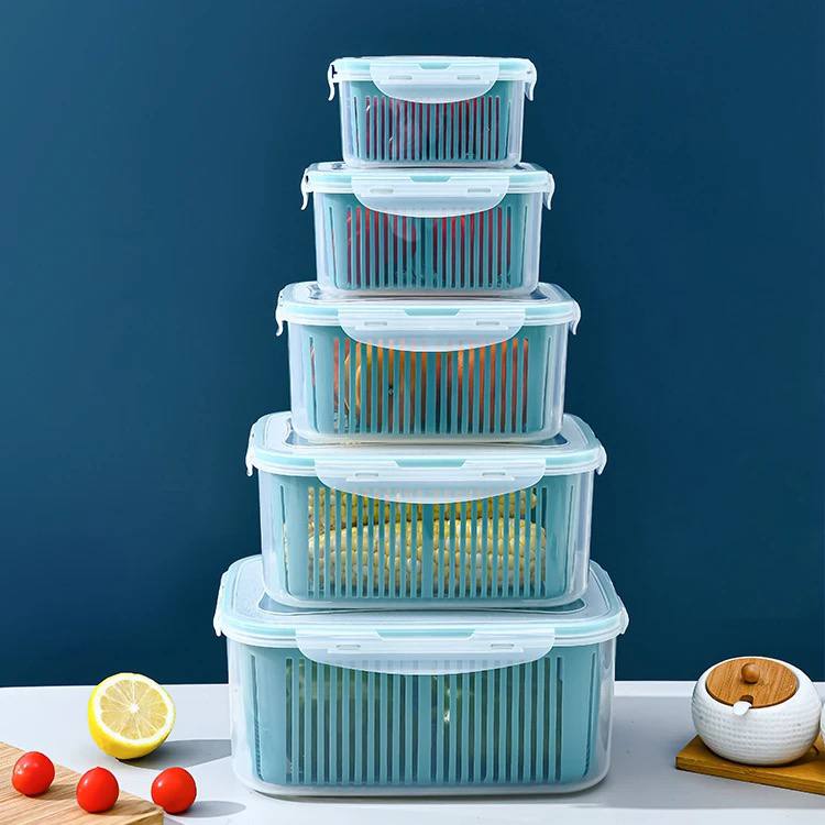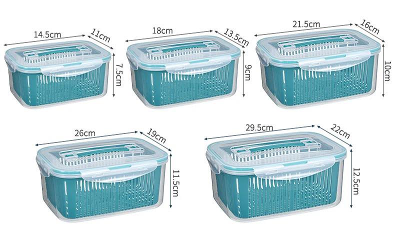طقم ثلاجه محكم الغلق بيدخل الميكرويف وغساله الأطباق كل علبه بداخلها مصفي لتصفيه الخضروات ومانع للرطوبه