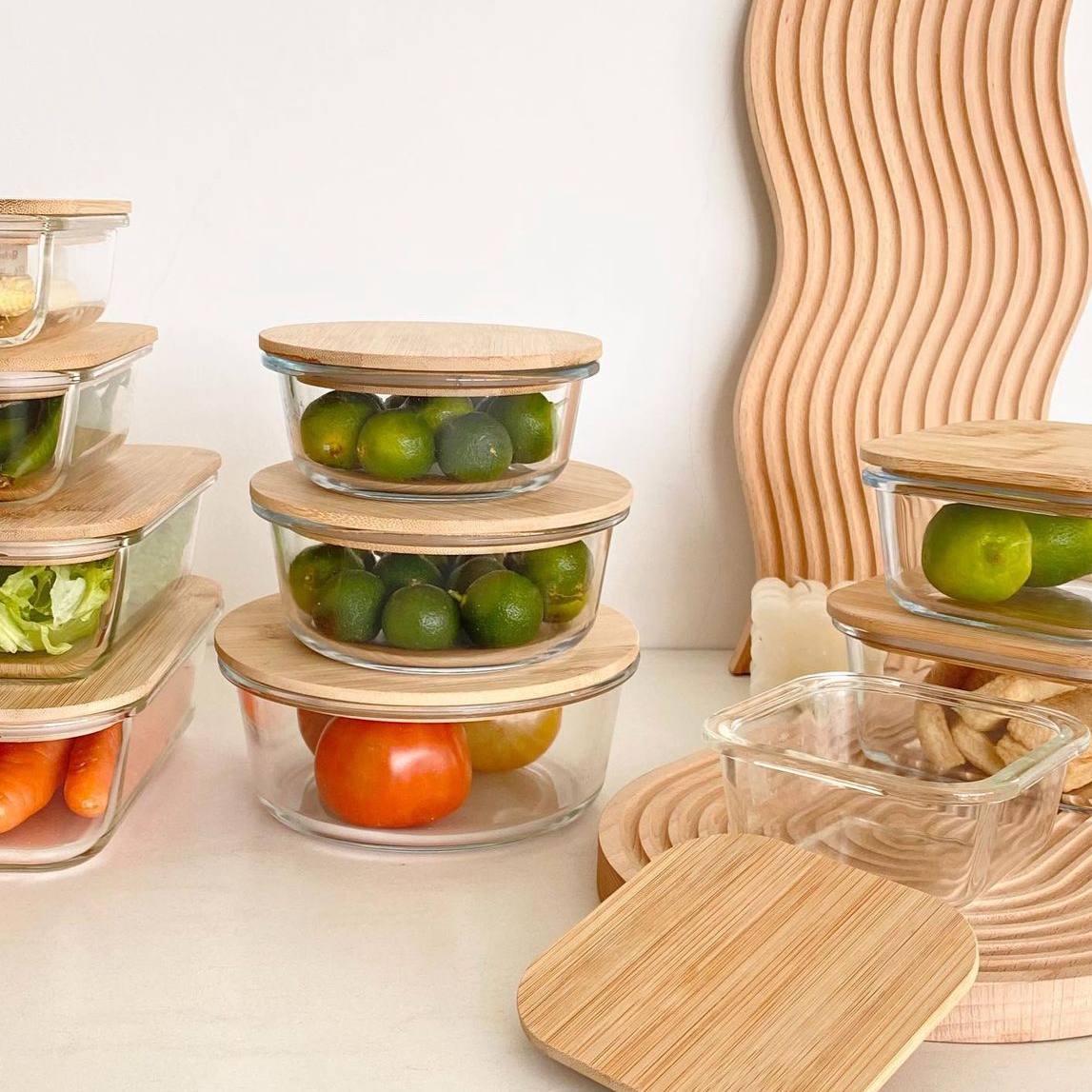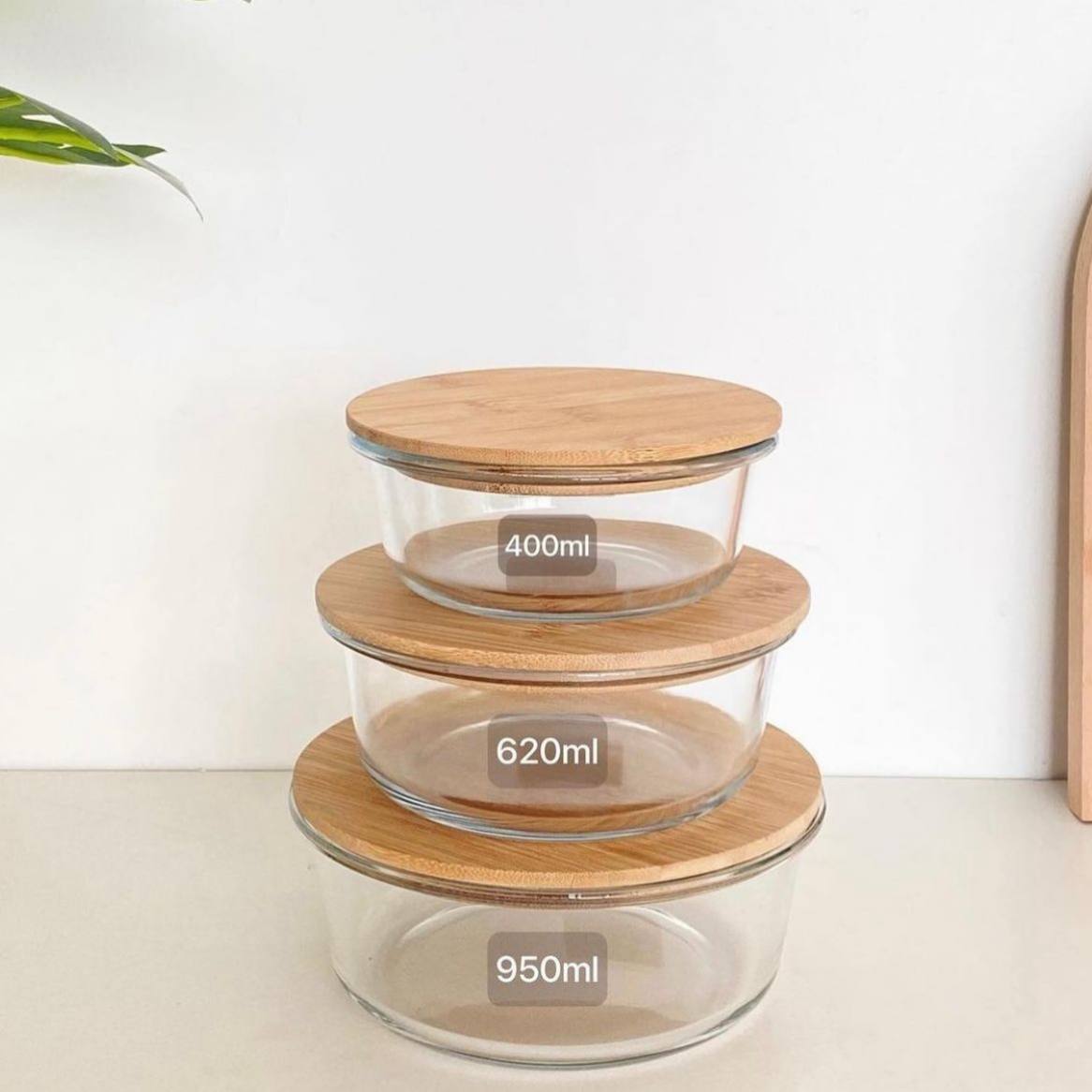 زجاج حراري بغطاء خشب بامبو محكم الغلق ومانع للانسكاب بجوان سليكون