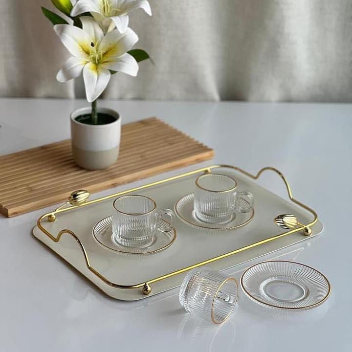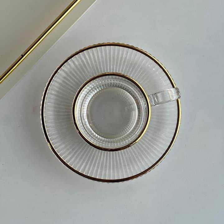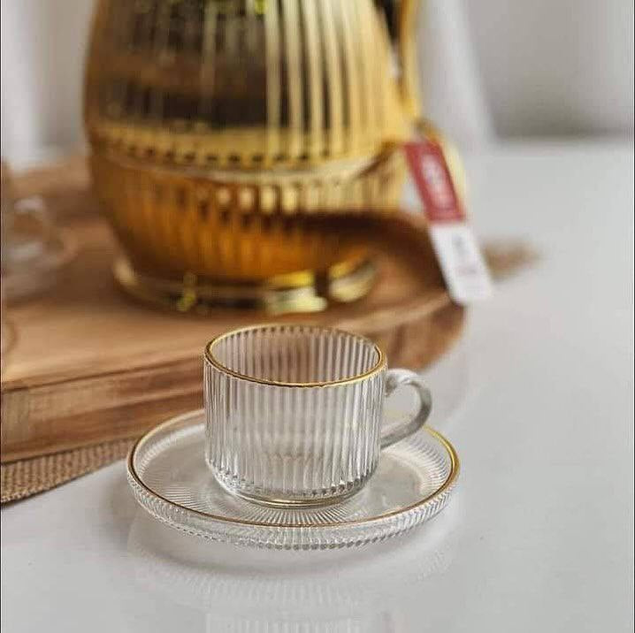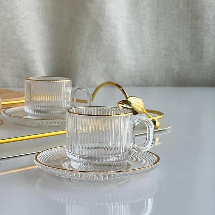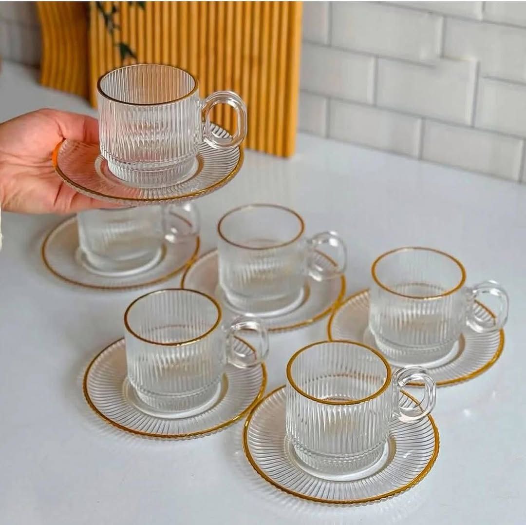 طقم فنجان بالطبق باطار جولد👑 12 قطعه ☕️