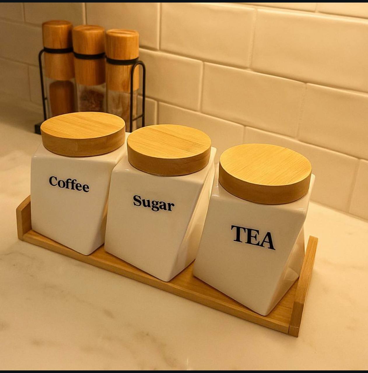 3 قطع بقاعده خشب بامبو 🔝🔝